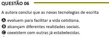 O recurso linguístico usado para marcar a síntese da opinião da autora sobre a temática desenvolvida foi o(a)
